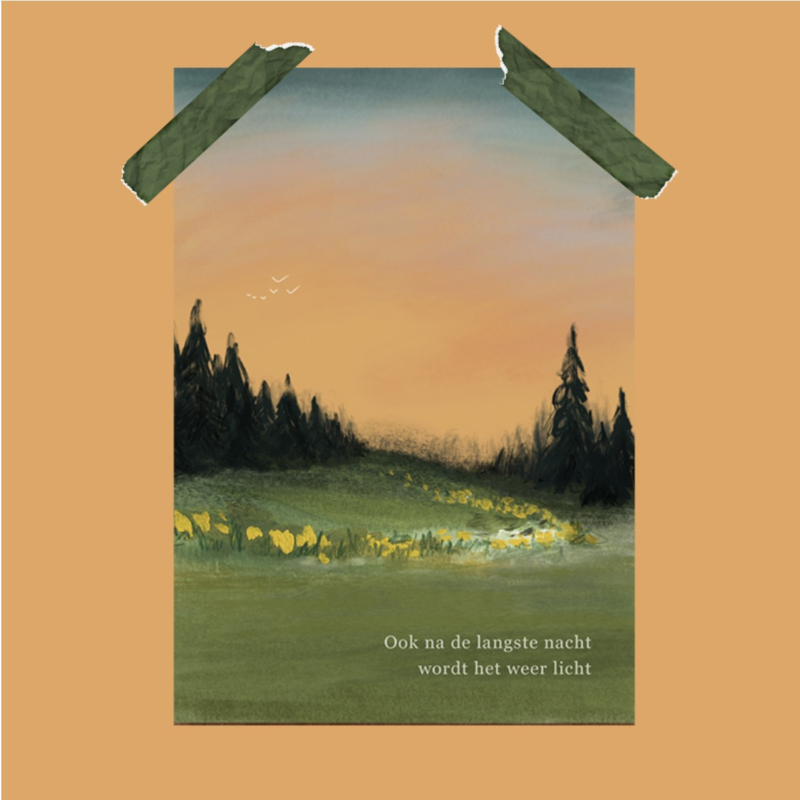 OverzichtIn deze dubbele kaart van Verlieskunst zit de eerlijkheid dat je niet weet hoe dingen zullen lopen en dat je geen controle hebt over wat er gebeurt in het leven. Maar ook na de langste nacht, wordt het weer licht.