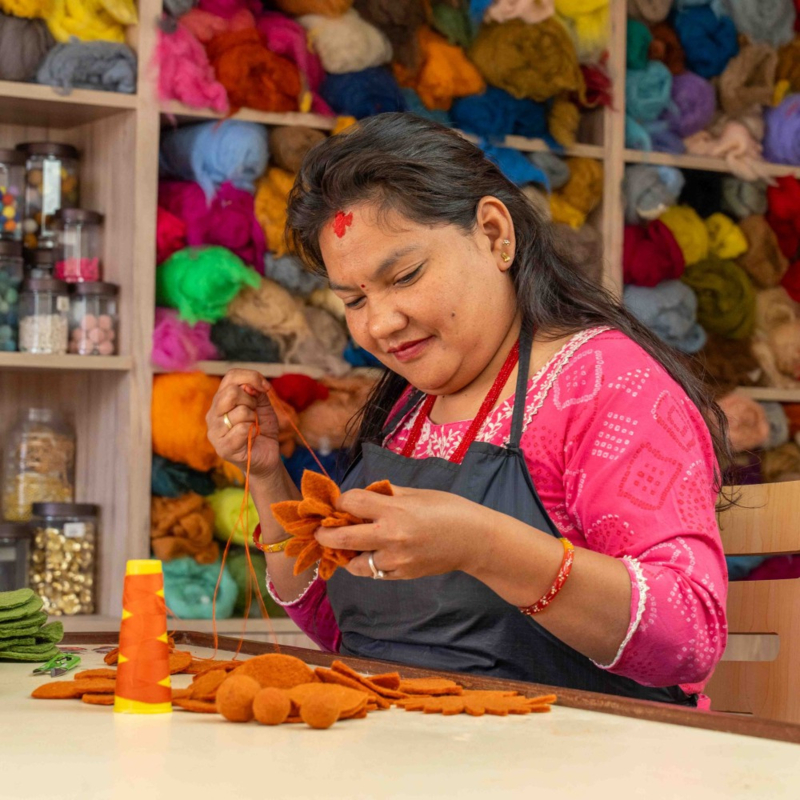 De vilten bloemen van Sjaal met Verhaal worden handgemaakt door vrouwen in Nepal. Ze zijn super duurzaam, want ze verwelken nooit!