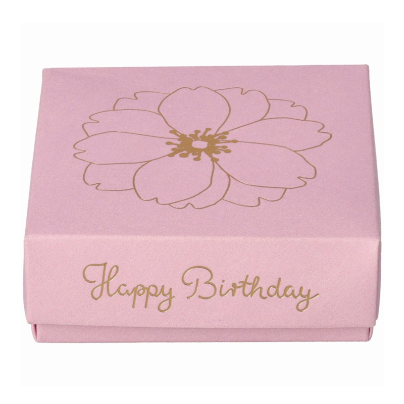 Het bordje zit verpakt in een mooi kartonnen doosje met de tekst 'happy birthday'.