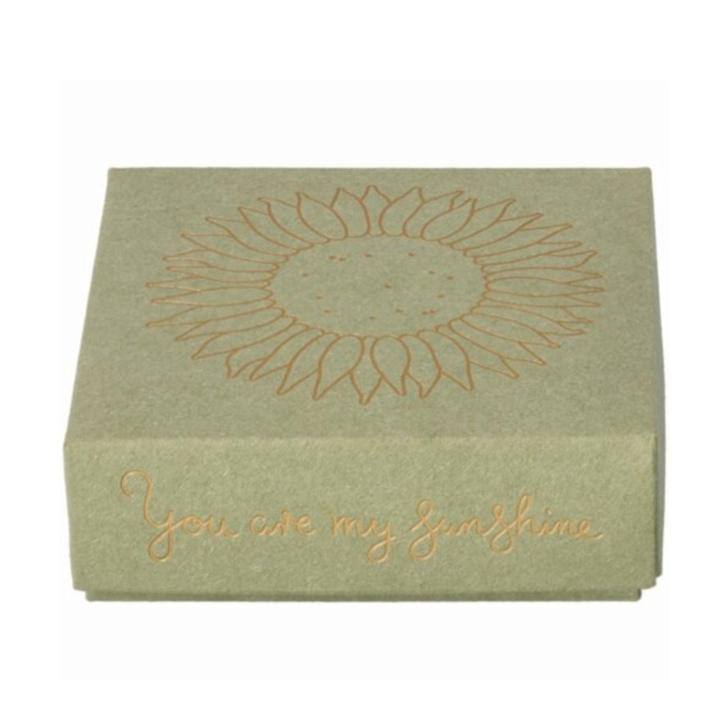 Het bordje zit verpakt in een mooi kartonnen doosje met de tekst 'you are my sunshine'.