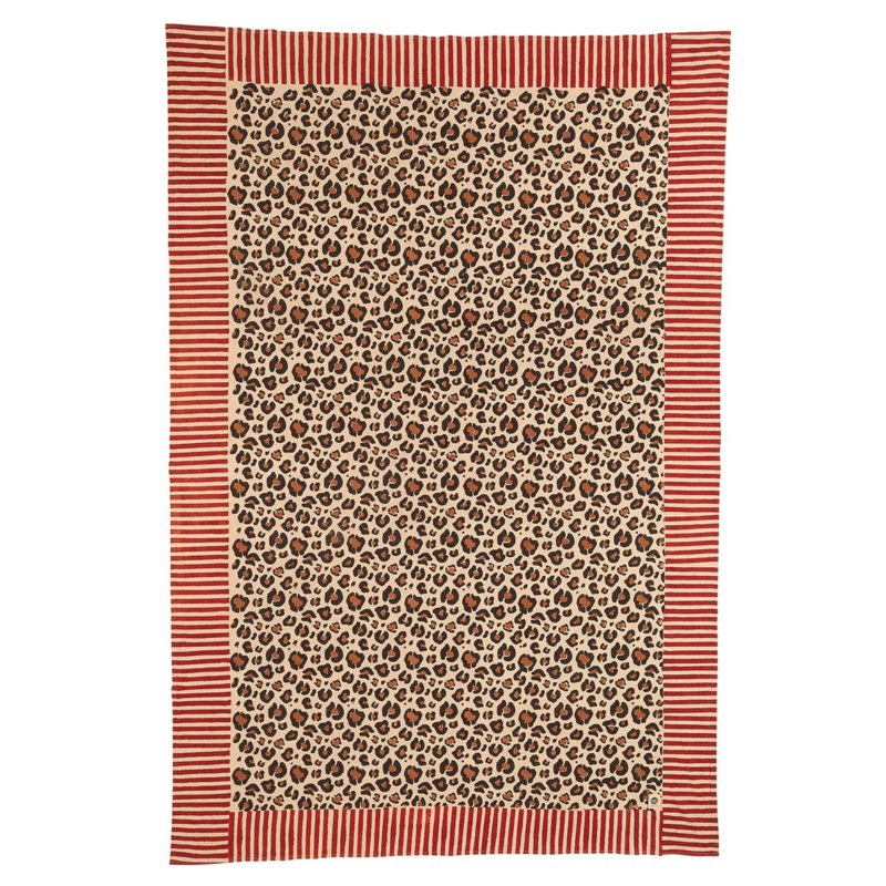Deze mooie Leopard Single plaid is volledig handgemaakt. Hij is geblokprint en zo veelzijdig. Leg de plaid over je bed of bank of gebruik hem als picknickkleed in het park, op tafel of op het strand. De plaid zit in een mooie draagtas met dezelfde leopard print.