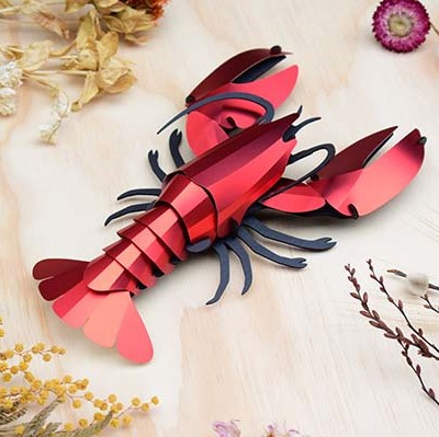 OverzichtDeze 3D puzzelset bevat alle onderdelen om de papieren kreeft van Assembli zonder lijm in elkaar te zetten. Het lichaam van de kreeft is gemaakt van zwart karton. Het schild is gemaakt van rood metallic papier.